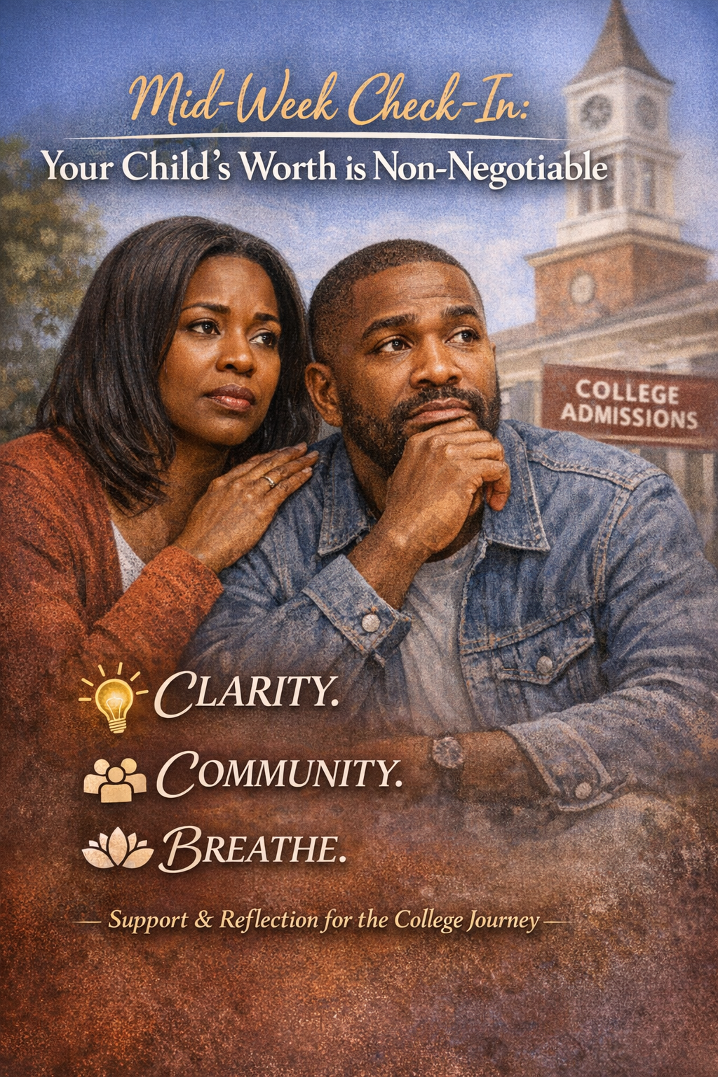 This week’s Mid‑Week Check‑In offers a grounding pause for parents supporting Black students through the college admissions journey. With shifting DEI policies, unpredictable timelines, and the emotional weight of wanting your child to be seen and protected, it’s easy to feel like you’re navigating this process alone. This post reminds you of a simple truth: your child’s brilliance is non‑negotiable, and their worth is never up for debate. When schools give vague or inconsistent guidance, it’s not a reflection of your parenting — it’s a sign that you deserve clearer tools and stronger strategies. Inside, you’ll find a culturally grounded insight to carry through the week, a gentle invitation to access free advocacy support, and a reflection prompt to help you honor the ways you’ve already shown up for your child. A moment of clarity. A moment of community. A moment to breathe. Join me for this week’s check‑in and return next Wednesday at noon for another grounding touchpoint.